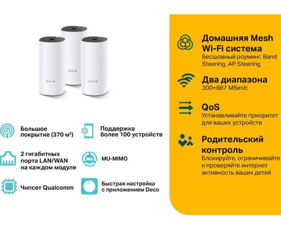 Deco максимально просто обеспечивает мощный Wi-Fi в каждой точке вашего дома. Для покрытия Wi-Fi во всем доме Deco M4 использует технологию TP-Link Mesh.