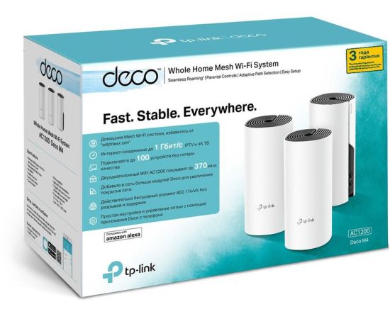 TP-LINK Deco M4 Бесшовный Mesh роутер AC1200 10, 100, 1000BASE-TX белый (упак.:3шт) (DECO M4(3-PACK)