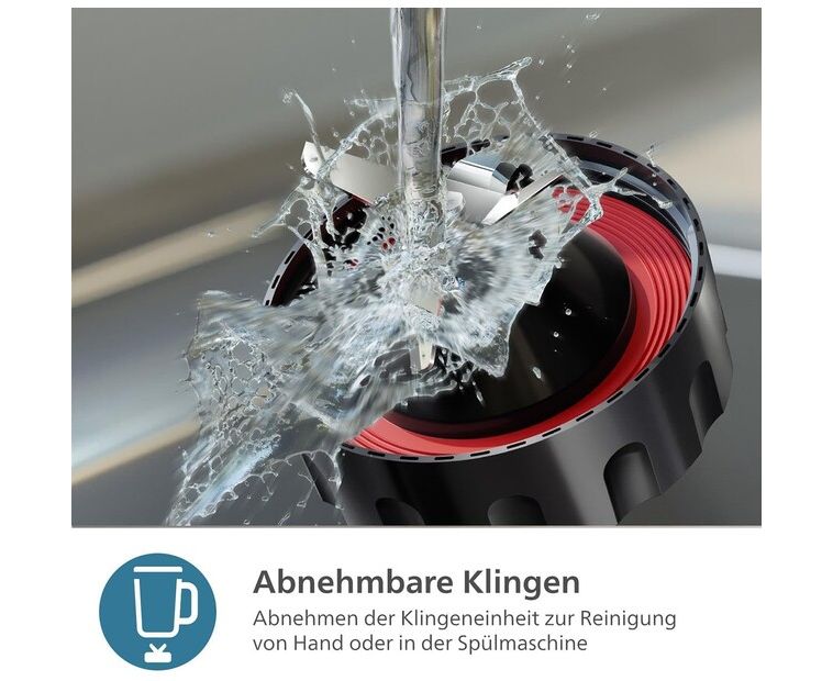 4 лезвия, крышка с отверстием для заправки, съемные части можно мыть в посудомоечной машине