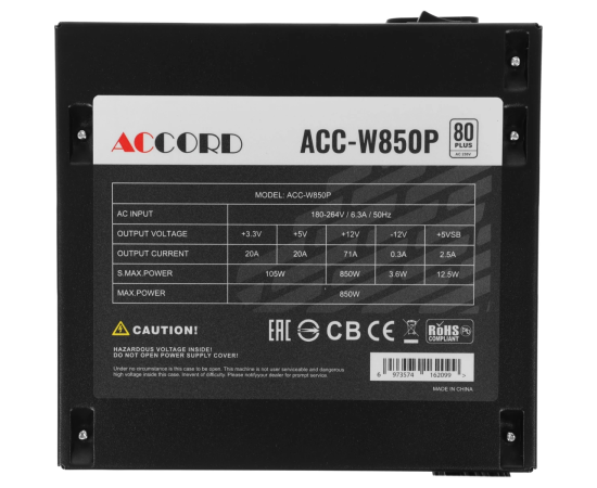 Блок питания Accord ACC-W850P, 850Вт, 120мм, retail