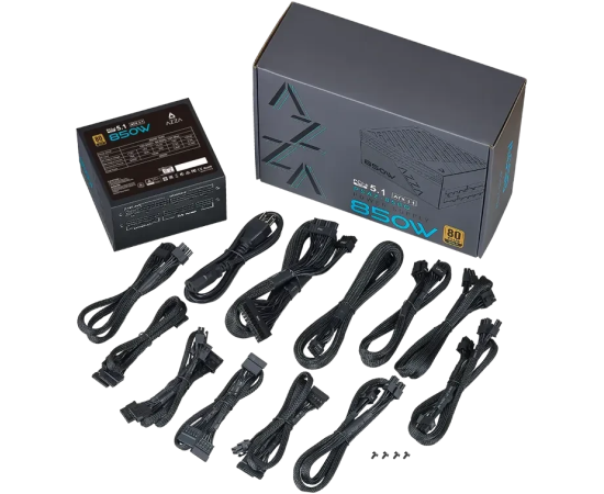 Блок питания Azza PSAZ-850GM Gen.5 (PSAZ-850GM (ATX 3.1)) ATX 850W 80+ gold (20+4pin) APFC 120mm fan Cab Manag RTL