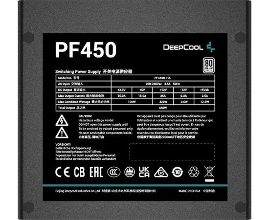 Блок питания Deepcool PF450 80+ ATX 2.4 450W, PWM 120mm fan, 80 Plus, Active PFC RET