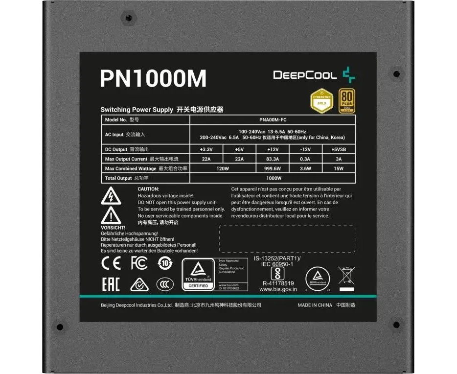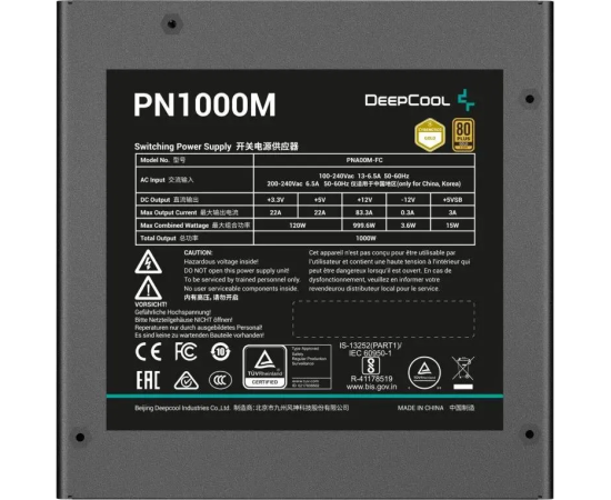 Блок питания DeepCool PN1000M Gen.5 (R-PNA00M-FC0B-WGEU), 1000Вт, 120мм, retail
