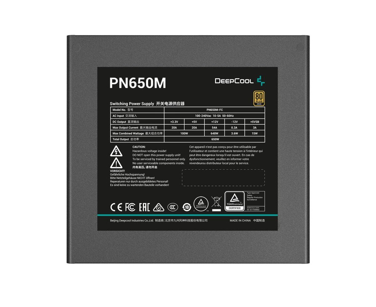 Блок питания Deepcool PN650M (R-PN650M-FC0B-EU) (650W, ATX, 20+4 pin, 120mm fan, PCI-E 6+2Px3 + 16 pin (12V-2x6), 8xSATA)