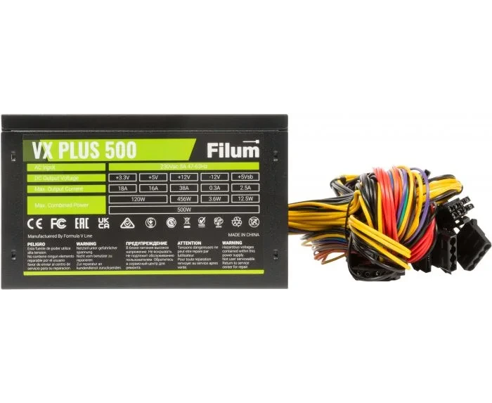 Блок питания Filum VX Plus 500 500W ATX (20/24+4+3 SATA+3 PATA+6/8 pin, вентилятор d120мм)