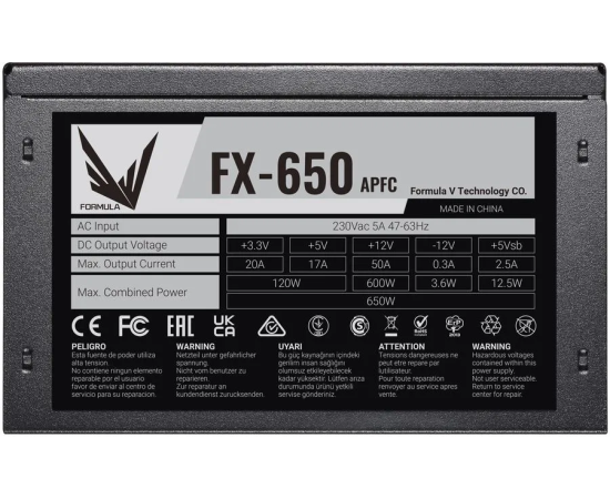 Блок питания Formula FX-650 ATX 650W (24+4+4pin) APFC 120mm fan 5xSATA RTL