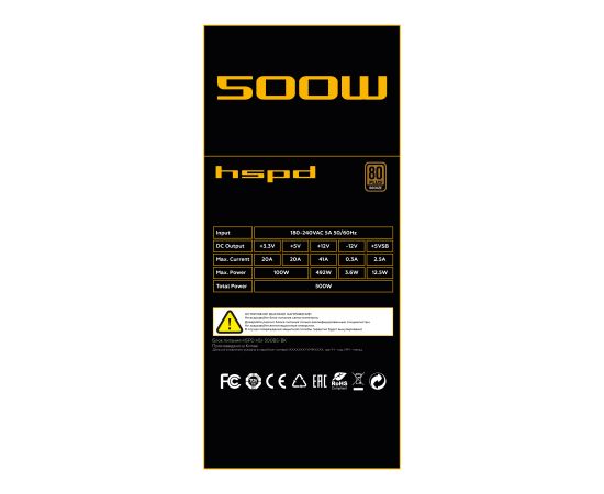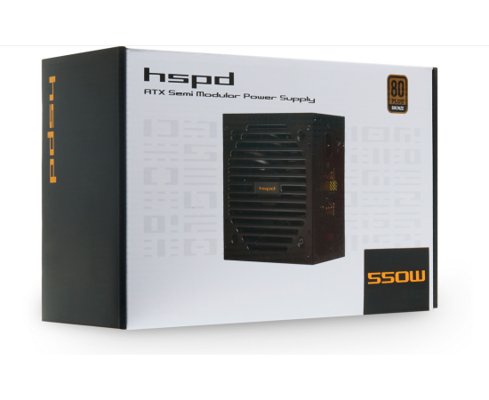 Блок питания HSPD HSI-500BS-BK 500W 80+ Bronze (ATX, 2.31, Semi-modular, 1x24(20+4)pin 550mm, 1xCPU*2 8(4+4)pin 600+150mm, 1xPCIe*2
