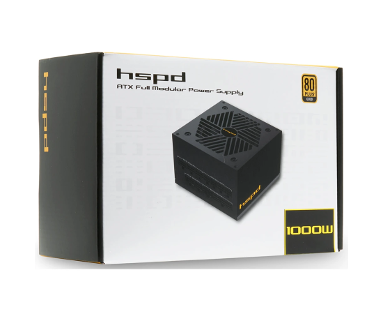 Блок питания HSPD HSK-1000GF-BK 1000W 80+ Gold (ATX, 2.52, Full modular, 1x24(20+4)pin mesh 550mm, 1xCPU*2 8(4+4)pin 650+150mm, 2xPCIe*2 8(6+2)pin