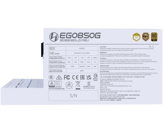 Блок питания Lian Li EG0850G (G9P.EG0850G.W000.RU) / White / ATX 3.1, 850W, 80 Plus Gold, PCIe 5.1, APFC, 120mm FDB Fan, Fully Modular