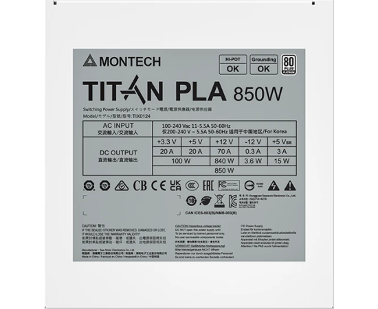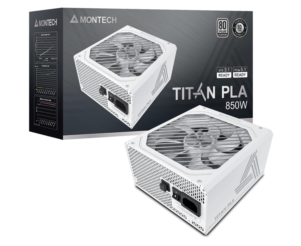 Блок питания Montech Titan PLA 850W (TIX0124) / ATX 3.1, APFC, 80 Plus Platinum, Japan caps, 135mm fan, full modular