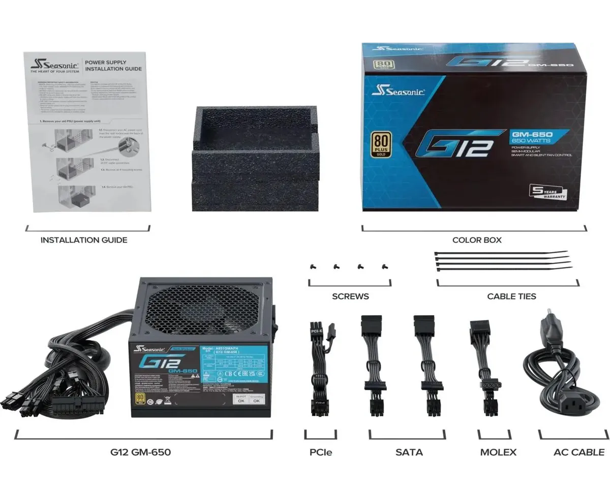 Блок питания Seasonic G12 GM-650 (g12 gm-650 ssr-650fm), 650Вт, 120мм, черный, retail