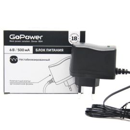 Блок питания GoPower 500mA 6V 5,5x2,5/12мм нестабилизированный положительная полярнос...