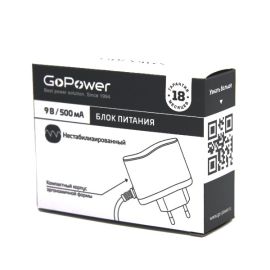 Блок питания GoPower 500mA 9V 5,5x2,1/12мм нестабилизированный отрицательная полярнос...