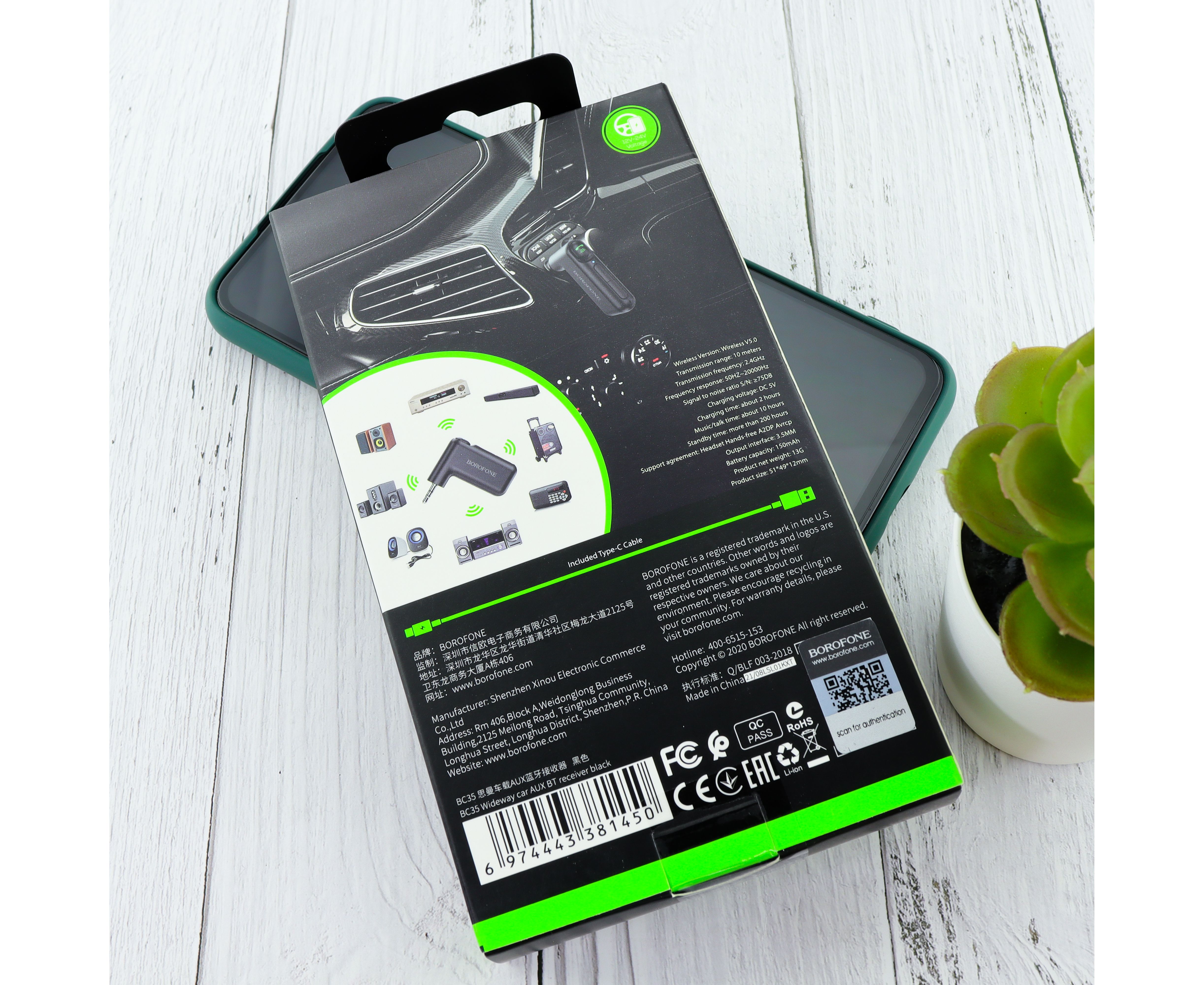 Bluetooth адаптер BOROFONE BC35 Wideway car AUX BT ресивер автомобильный USB AUX с микрофоном (чёрный)