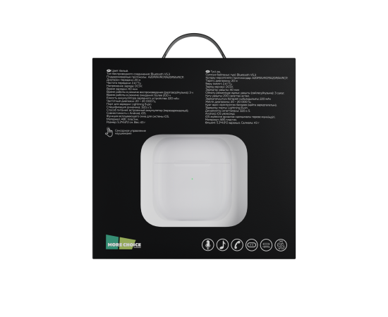 Материал: АВС пластик. Тип беспроводного соединения: Bluetooth 5.3 Тип наушников: вкладыши, беспроводные Диапазон передачи: 20 м Время зарядки: 40 мин. Время работы в режиме использования: 3 ч. Время работы в режиме ожидания: более 200ч. Емкость аккумулятора: 220 мАч. Комплектация: наушники, кейс для хранения и зарядки, зарядный кабель, держатель для наушников, буклет, инструкция. Цвет: White