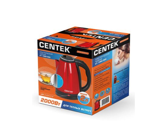 Чайник Centek СТ- 1068 (красный) мет алл 2л. 2000Вт. хромированная вставка на крышке