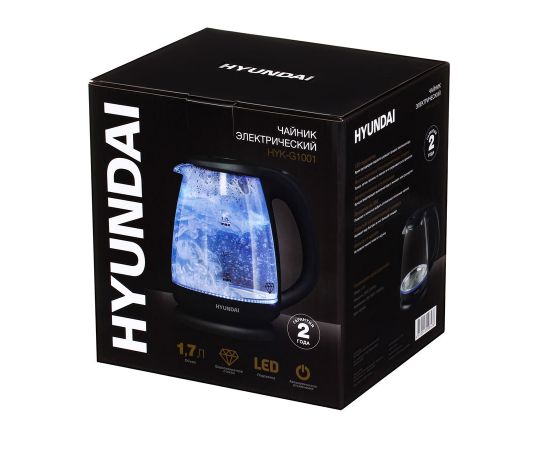 Чайник Hyundai HYK-G1001 1.7л. 2200Вт черный (корпус: стекло)