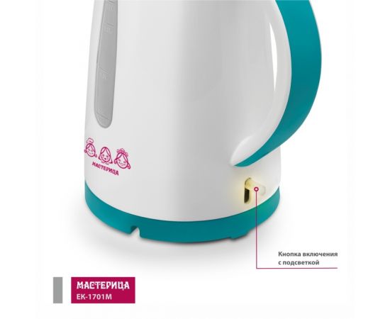 Чайник Мастерица ЕК-1701M белый/бирюзовый