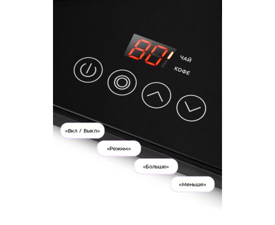 Управление платформой осуществляется при помощи сенсорных кнопок на корпусе. Во время работы платформы на дисплее отображается установленная температура нагрева. Кнопка «Режим» циклически переключает два режима работы платформы с подогревом: Чай и Кофе.