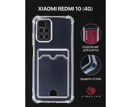 Чехол силиконовый Card Holder для Xiaomi Redmi 10 (4G) с картхолдером и защитой камеры, прозрачный (Сяоми Редми 10)