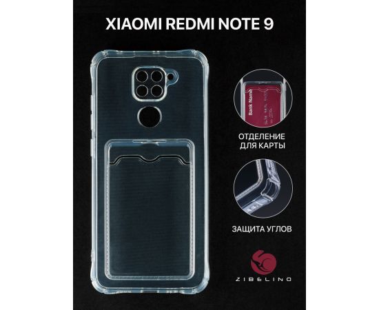 Чехол силиконовый Card Holder для Xiaomi Redmi Note 9 с картхолдером и защитой камеры, прозрачный (Сяоми Редми Нот 9)