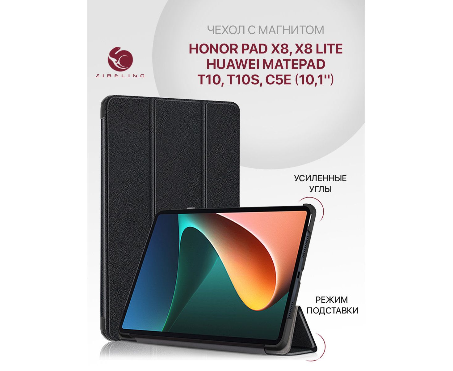 Чехол для планшета Huawei MatePad T10, T10s, C5e, Honor Pad X8, X8 Lite 10.1" (10.1") черный с магнитом