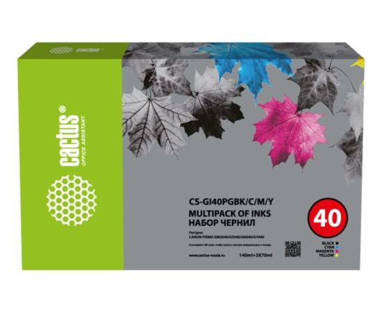 Чернила Cactus CS-GI40PGBK/C/M/Y голубой/пурпурный/желтый/черный набор350мл для Canon Pixma G5040/G6040/GM2040