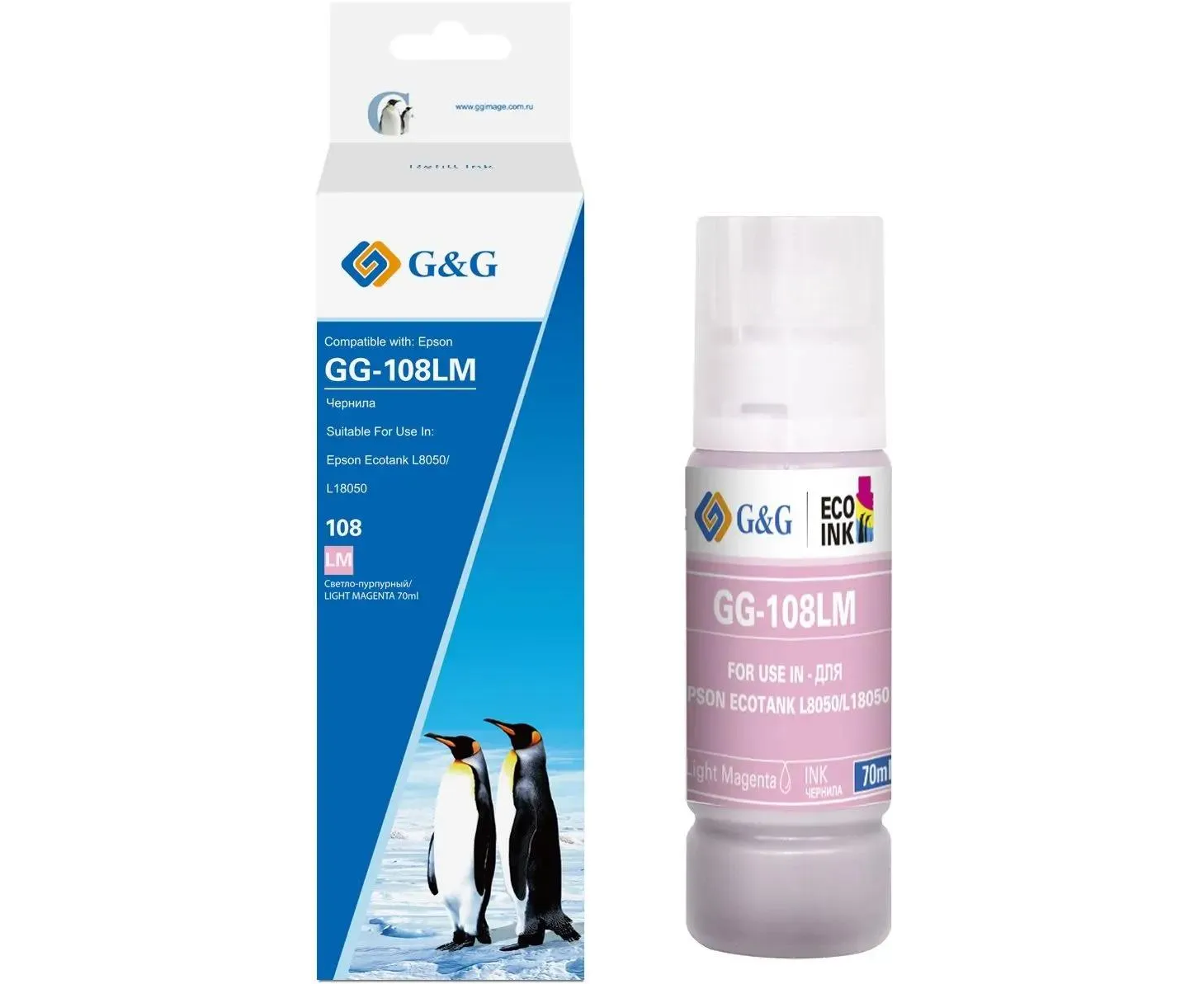 Чернила G&G GG-108LM C13T09C64A светло-пурпурный70мл для Epson Ecotank L8050/L18050