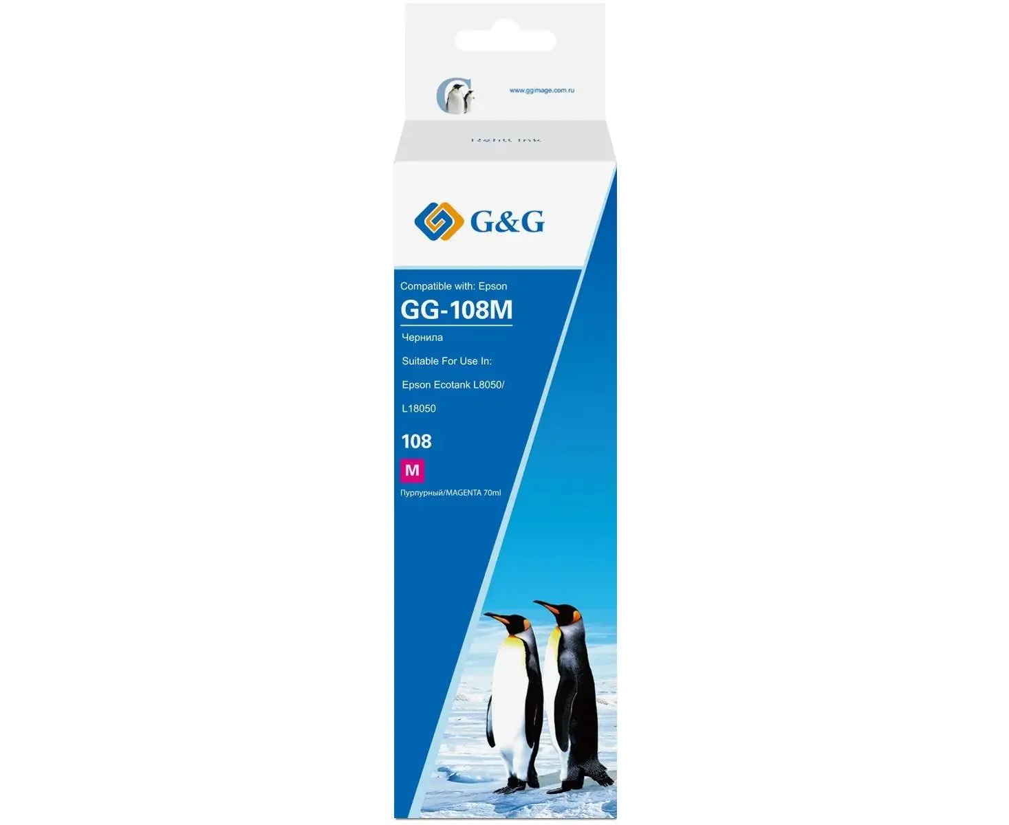 Чернила G&G GG-108M C13T09C34A пурпурный70мл для Epson Ecotank L8050/L18050