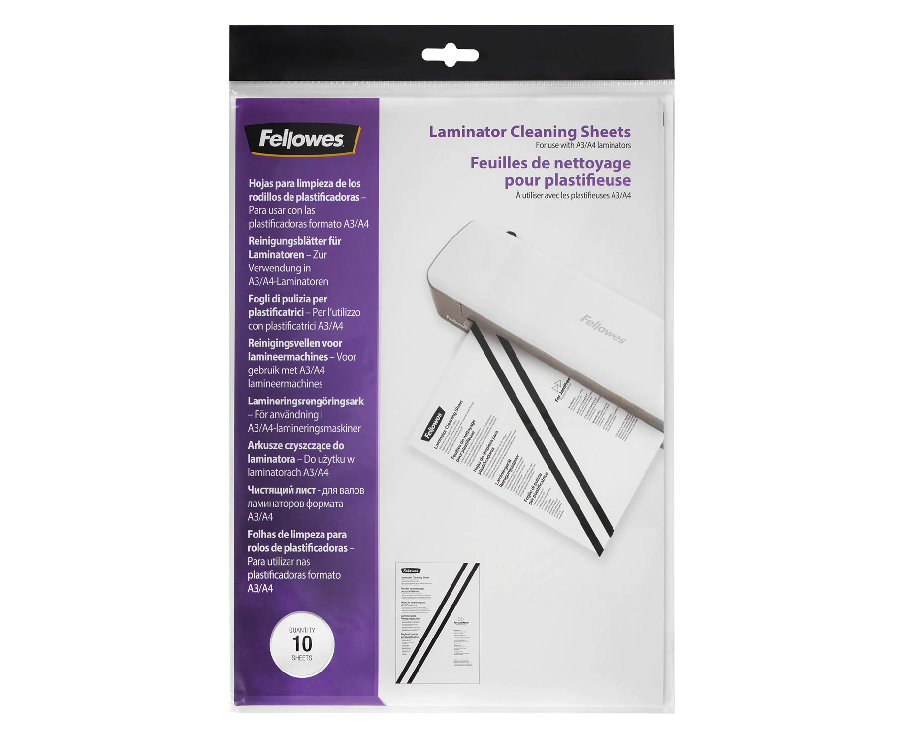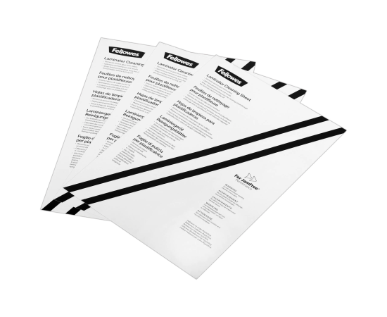 Чистящий лист FELLOWES адсорбирует остатки клея, пыли и грязи с поверхности валов.