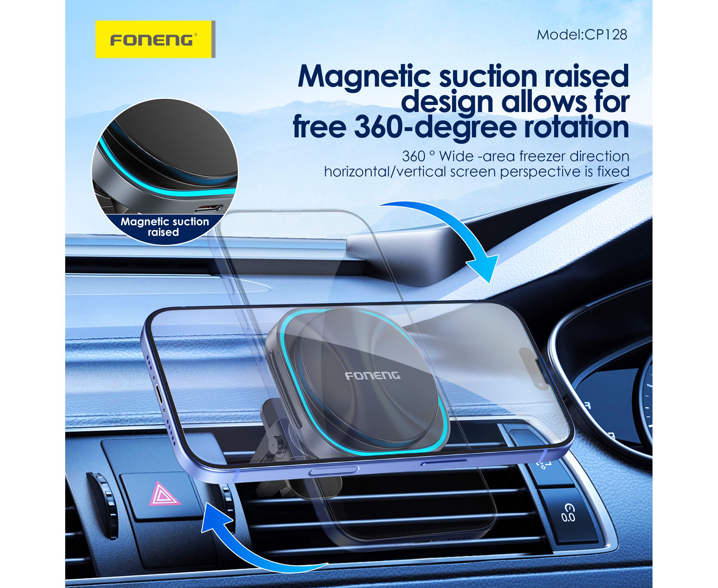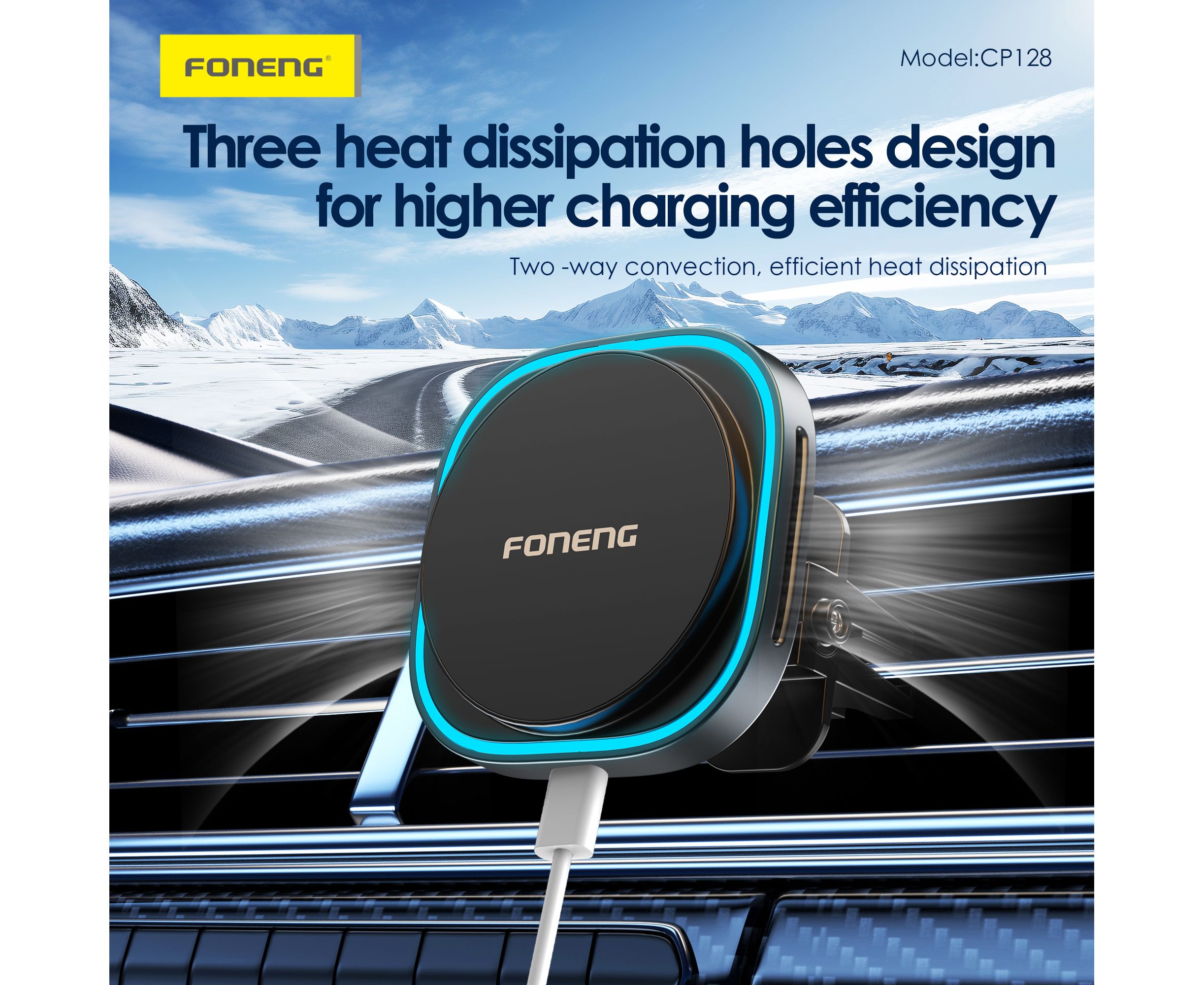 Держатель автомобильный Foneng CP128 в воздуховод, с беспроводной зарядкой 15W MagSafe (Black)