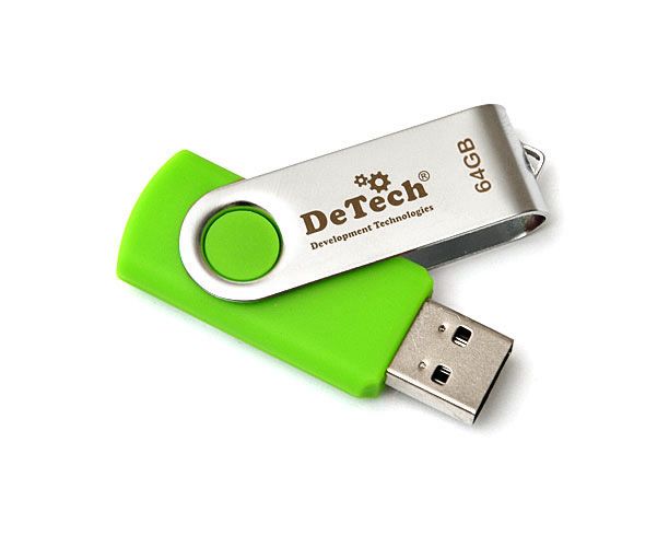 Корпус DeTech изготовлен из прочного пластика. Благодаря богатой цветовой гамме каждая модель приобретает индивидуальный характер. Дополнительным преимуществом является поворотная металлическая скоба, которая также защищает устройство памяти USB и придает ему неповторимый вид. Поворотная система замыкания USB и отсутствие колпачка удовлетворит потребности даже самых рассеянных пользователей.