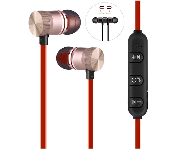 Беспроводная Bluetooth гарнитура с магнитами для фиксации, управления звонками и музыкой.