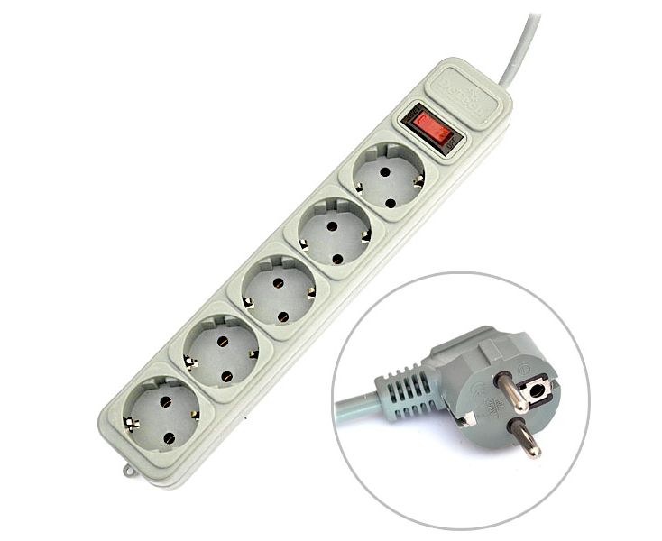 Сетевой фильтр на 5 розеток "евростандарт" с выключателем. Евровилка. Предназначен для подключения широкого спектра бытовой и электронной техники. Ударопрочный корпус из негорючего и нетоксичного АБС-пластика. Защита от короткого замыкания и перегрузки. Возможность крепления