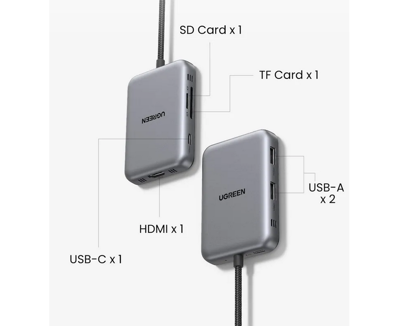 Док станция UGREEN CM896 (65759) 7-in-1 4K 60Hz 1*HDMI 1*USB-C 2*USB-A 1*SD 1*TF Cards USB-C Hub Space Gray