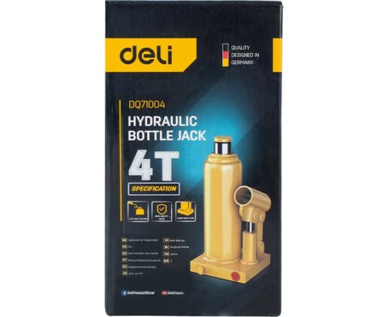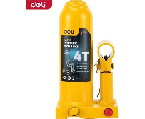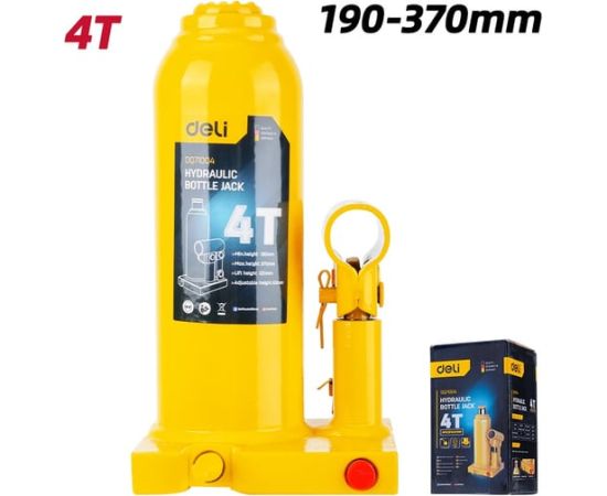 Домкрат бутылочный Deli DQ71004 гидравлический макс.грузоподъемность 4 т, высота подхвата 190мм, высота подъема 370мм