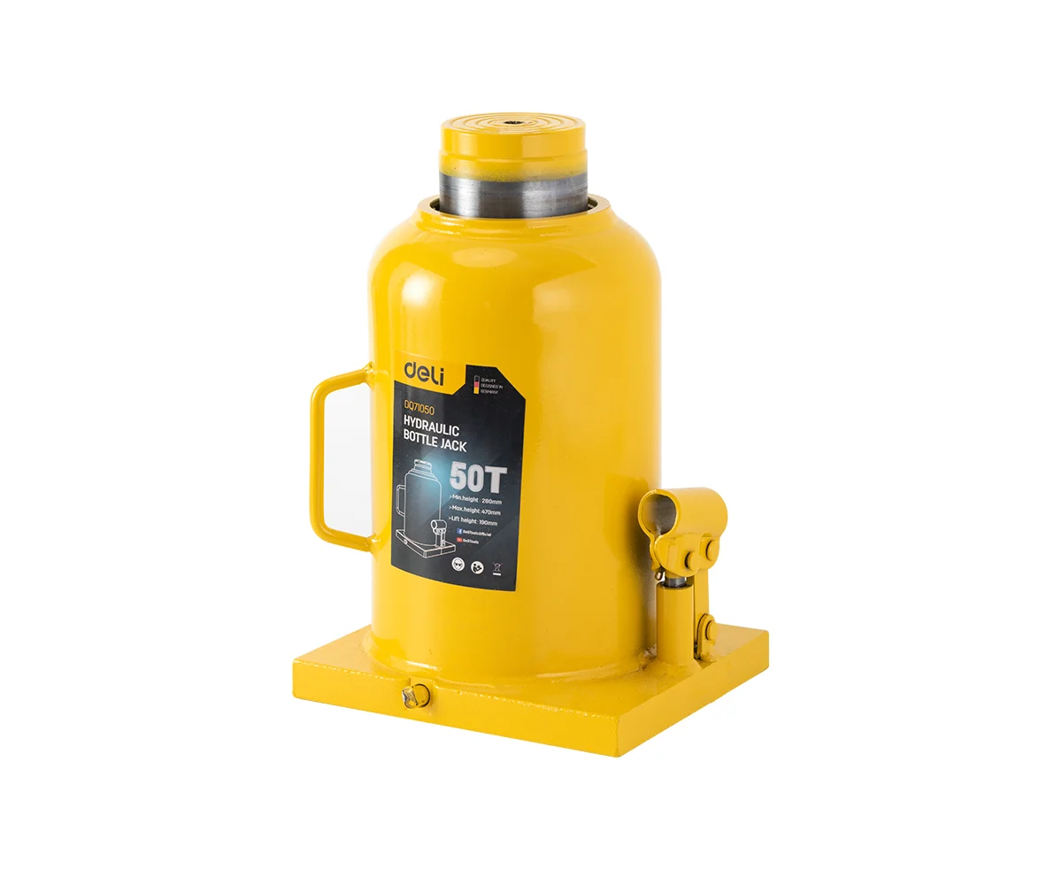 Домкрат бутылочный гидравлический Deli DQ71050 макс.грузоподъемность 50 т, высота подхвата 280мм, высота подъема 470мм, рабочий ход 190мм