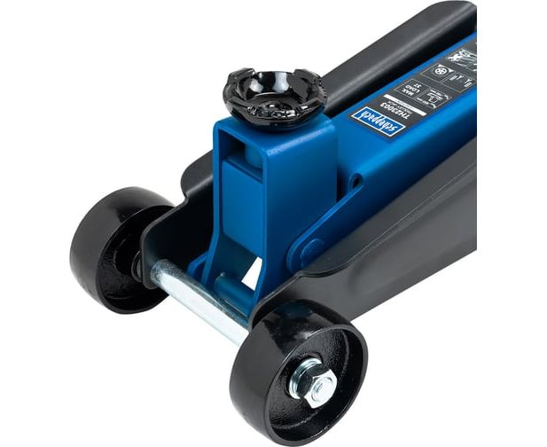 Домкрат подкатной гидравлический грузоподьемностью до 3 тонн от бренда Scheppach идеально подходит для ежедневного использования в автомастерской, на шиномонтаже или в гараже.