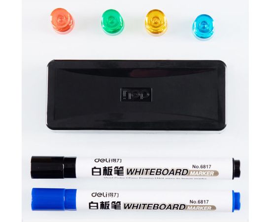 Доска стеклянная Deli 8741 стеклянная белый 100x200см стекло магнитный 4 магнита/2 маркера/стиратель