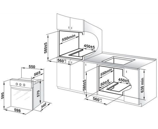 Размеры для встраивания: 58x55x56см