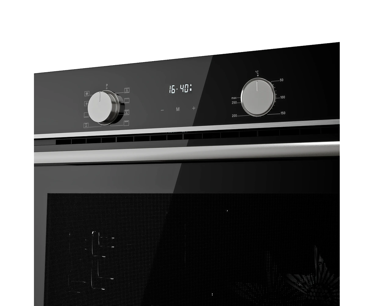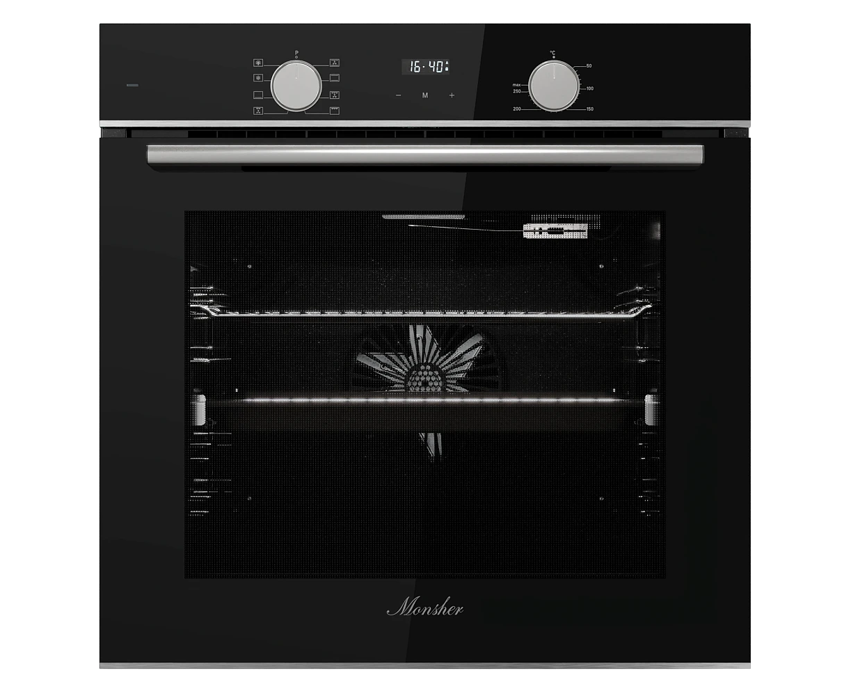 Духовой шкаф MONSHER MOE 6008 Acier 60см, объем 80л, утапливаемые переключатели, механический таймер, 2 стекла в дверце, 8 режимов