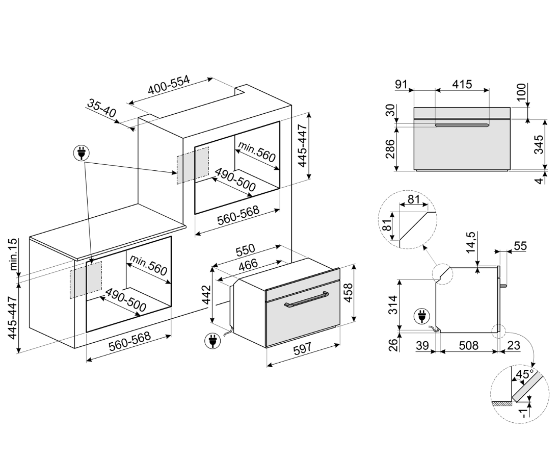 Духовой шкаф SMEG SO4902M1N компактный многофункциональный, комбинированный с микроволновой печью, ширина 60см, высота 45см
