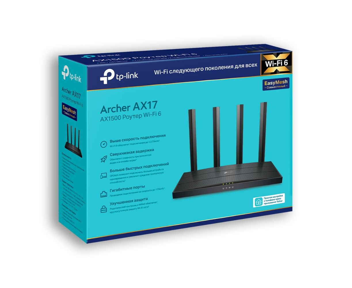 TP-Link Archer AX17 Двухдиапазонный гигабитный Wi-Fi роутер AX1500 с поддержкой Mesh