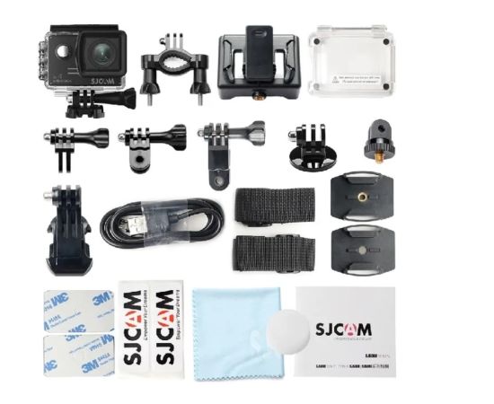 Экшн-камера, Водонепроницаемый кейс, Крепление на руль велосипеда, Крепление "липучка", Кабель USB, Документация