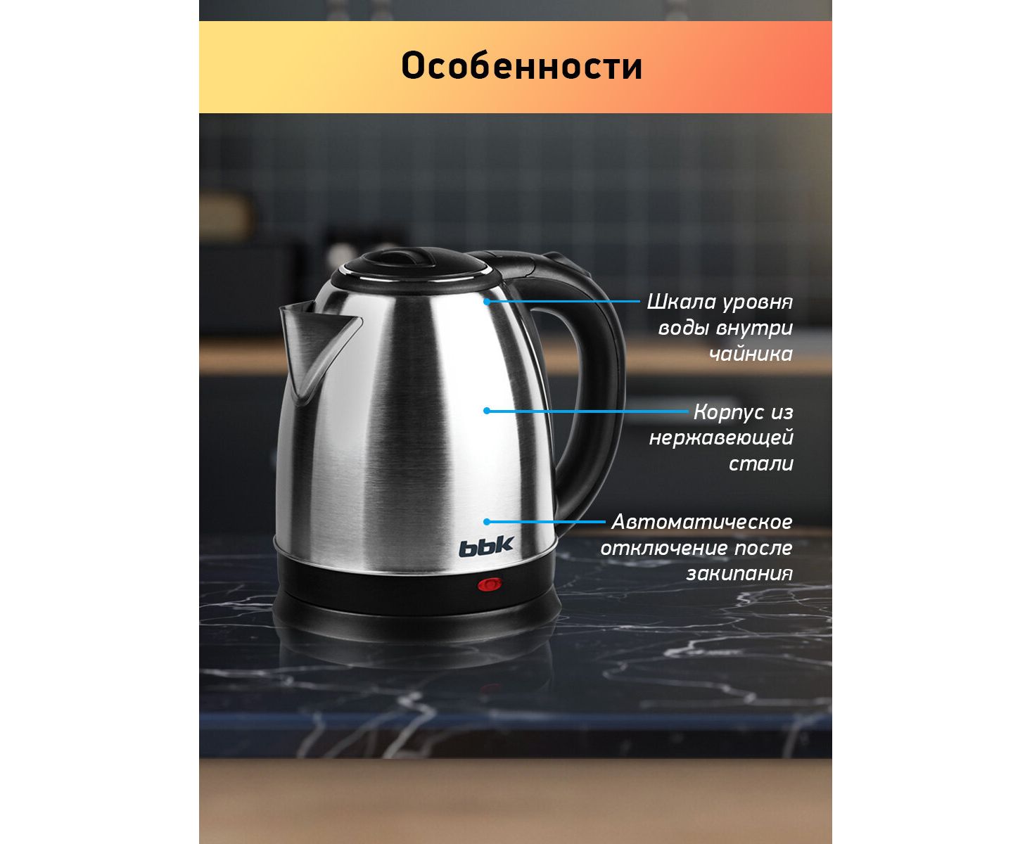 Электрочайник BBK EK1503S черный/нерж
