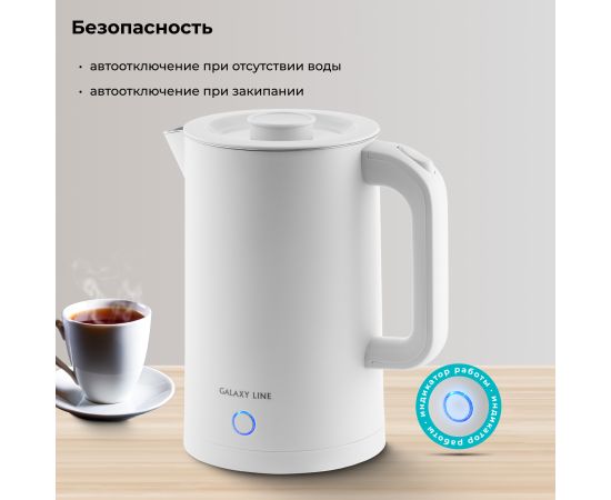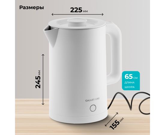 Электрический чайник GALAXY LINE GL0362 в белом цвете – это сочетание высокой мощности, стильного дизайна и безопасного использования. Этот чайник мощностью 2200 Вт быстро нагреет воду для вашего утреннего чая или кофе. Объём 1,7 литра идеально подходит для большой семьи или компании гостей.