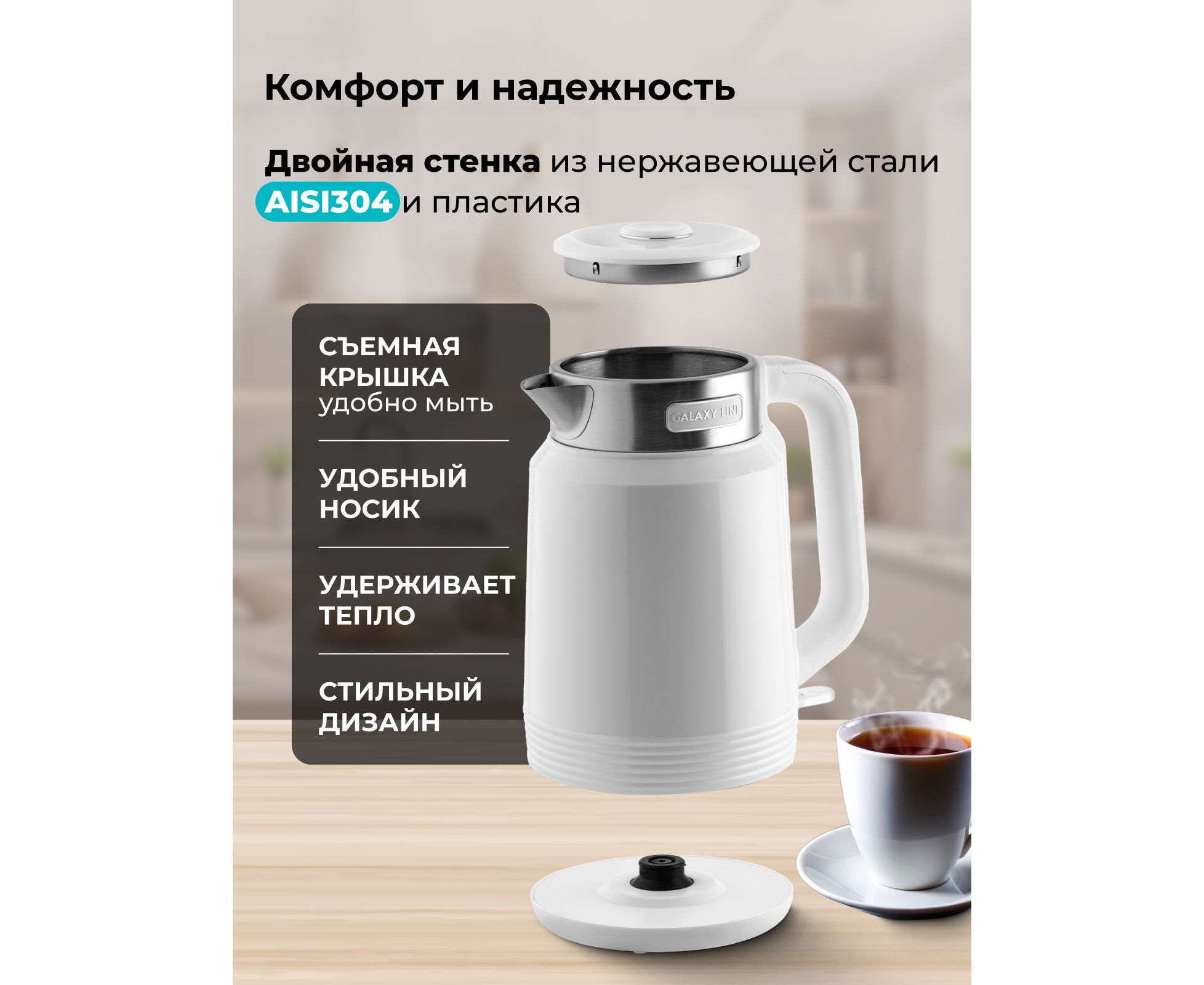 Электрический чайник с двойными стенками GALAXY LINE GL0364 прослужит вам долгие годы и украсит интерьер любой кухни.