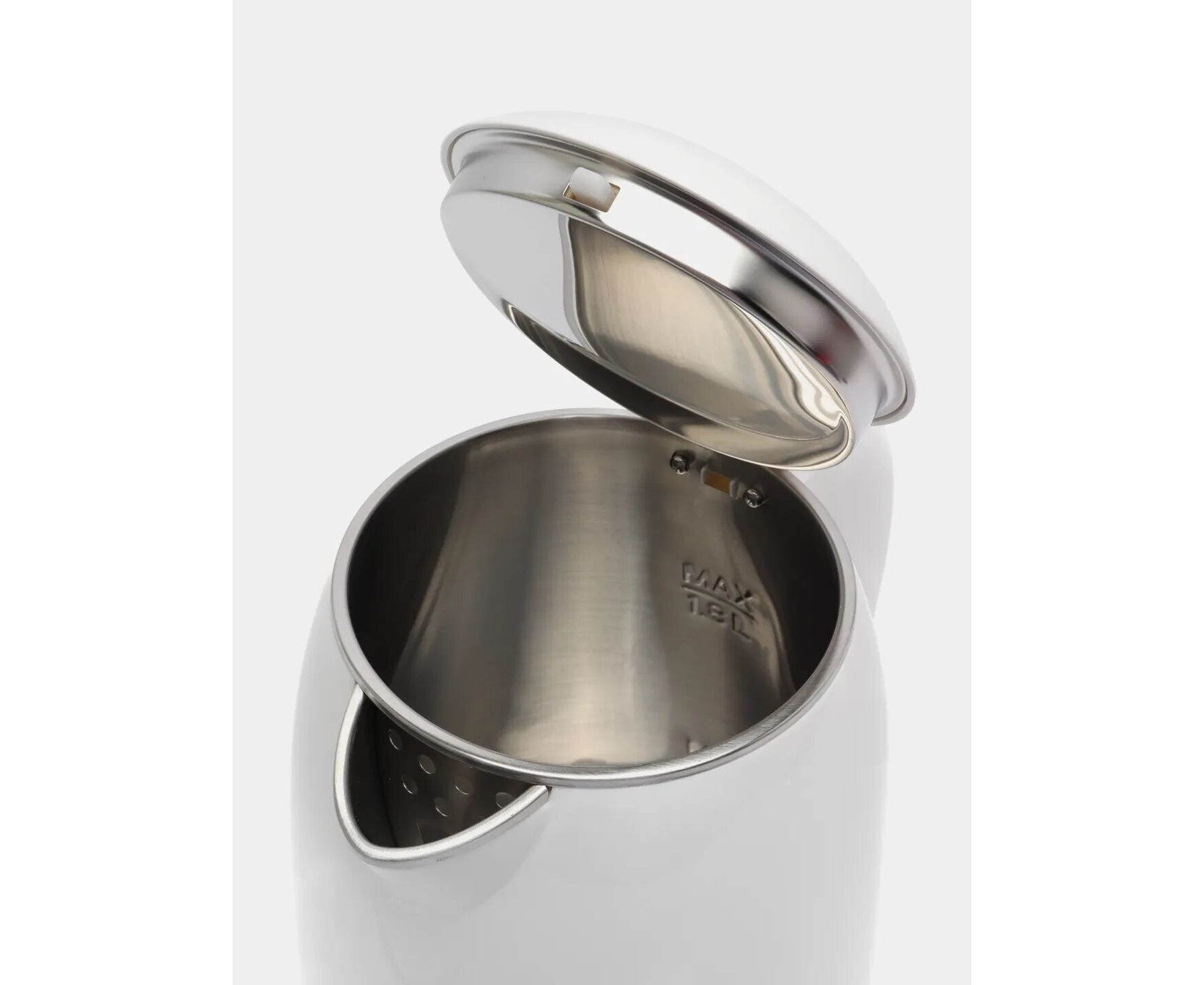 Чайник с закрытым нагревательным элементом и двухслойным корпусом (термоизолированный пластик сверху, колба из нержавеющей стали внутри), быстрее нагревается и дольше удерживает тепло (эффект термоса), отключение при закипании/без воды, световой индикатор работы, внутренний индикатор уровня воды, вращение на 360°.