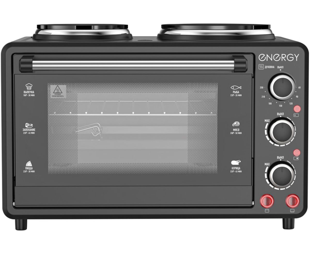 Электрическая духовка ENERGY gн-26a-b 1400 Вт, 26 л 105503 предназначена для приготовления и разогрева пищи.