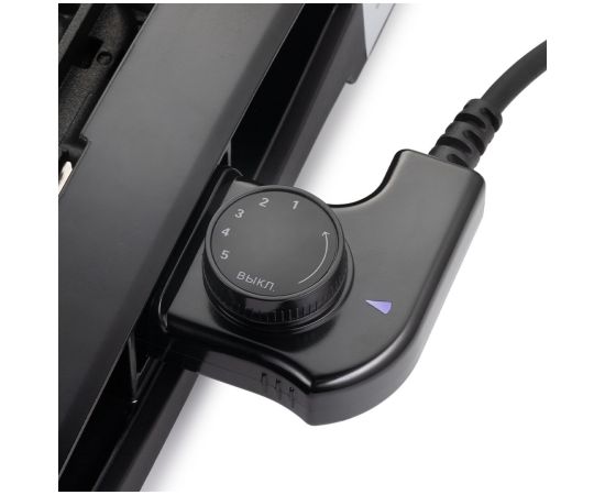 Регулятором температуры устанавливается уровень нагрева панели от 140 до 240 C. Регулятор является ручкой термостата. Термостат обеспечивает возможность плавно регулировать температуру и поддерживать ее в процессе приготовления.
